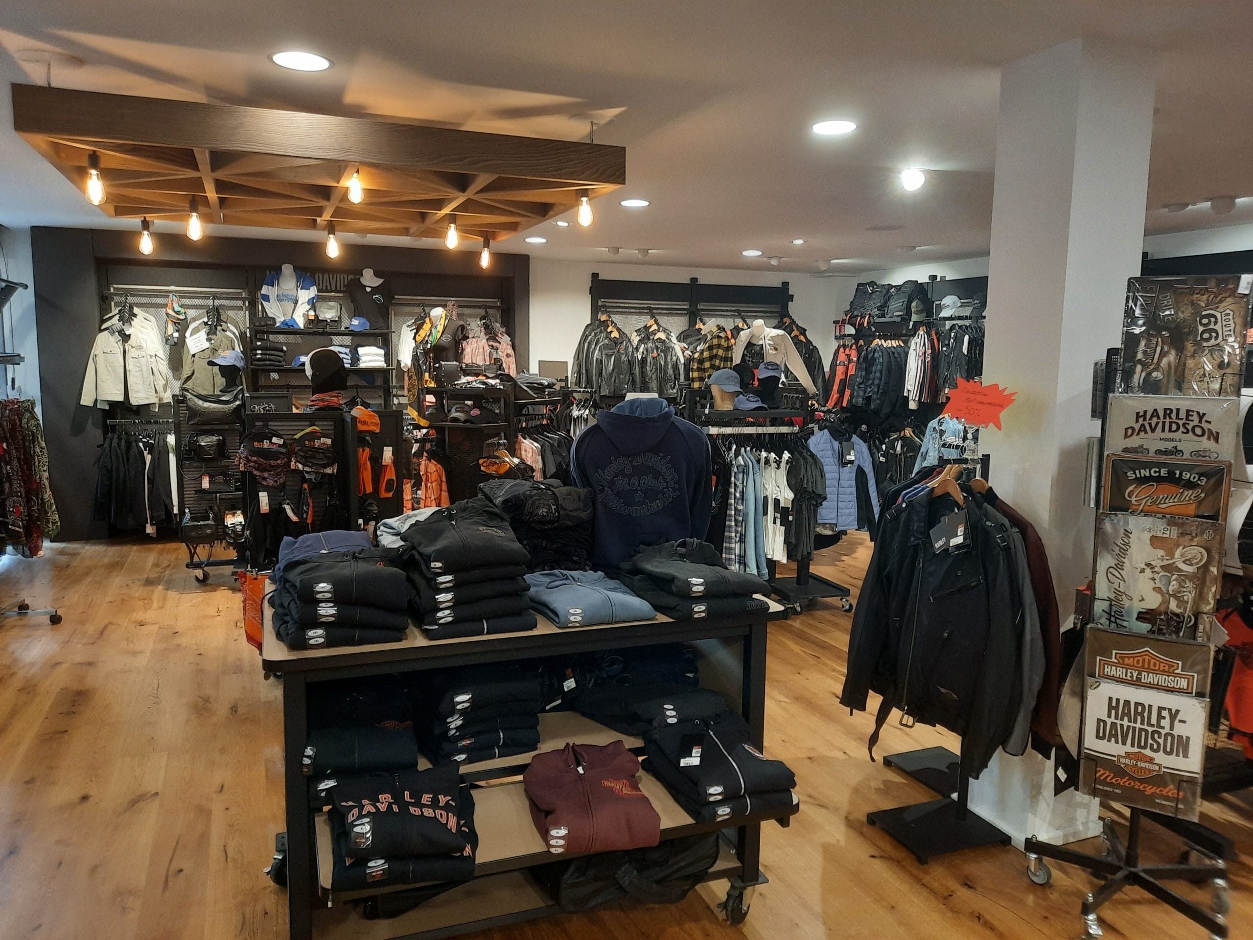 Que vous cherchiez à vous équiper ou simplement offrir un cadeau, les ambiances et choix multiples sauront  retenir votre attention et émerveiller vos yeux. Du cuir aux casques, des chaussures aux chemises, des lunettes aux jeans, mais aussi des idées cadeaux en tout genre, mugs, services de table, horloge, BBQ’s, sans oublier bien sûr de formidables bijoux.