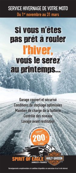Spirit of Eagle vous propose un nouveau service d’hivernage pour votre moto.