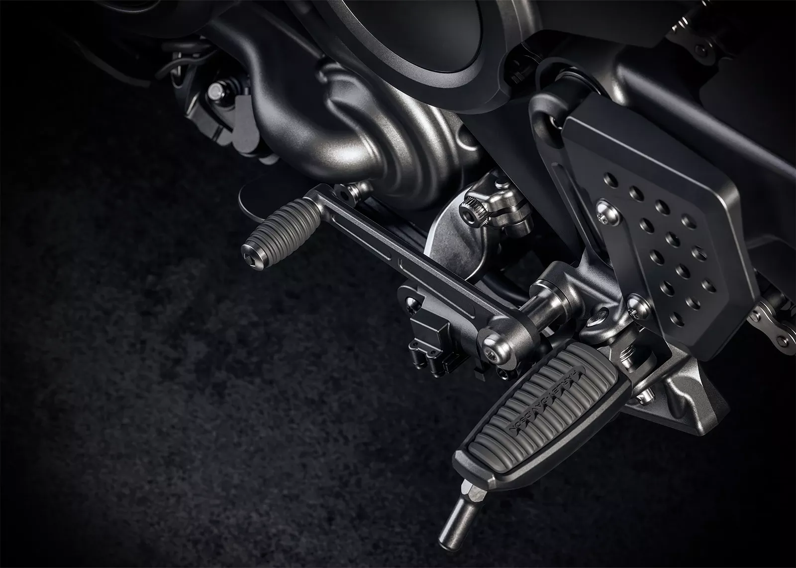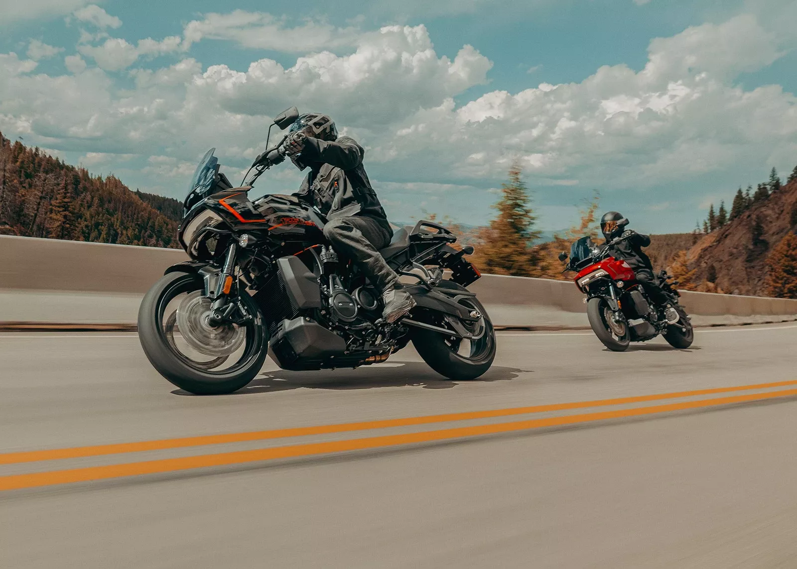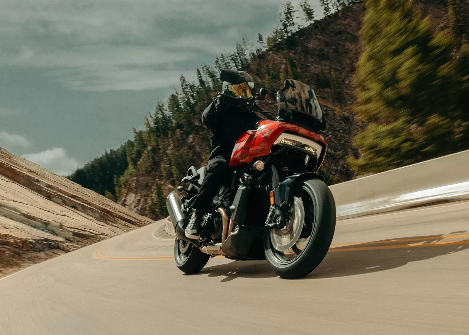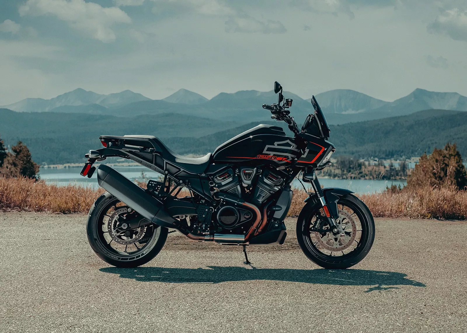 Avec ses roues de 432 mm, sa carrosserie allégée et ses suspensions abaissées, la Pan America est une véritable reine de l’asphalte.