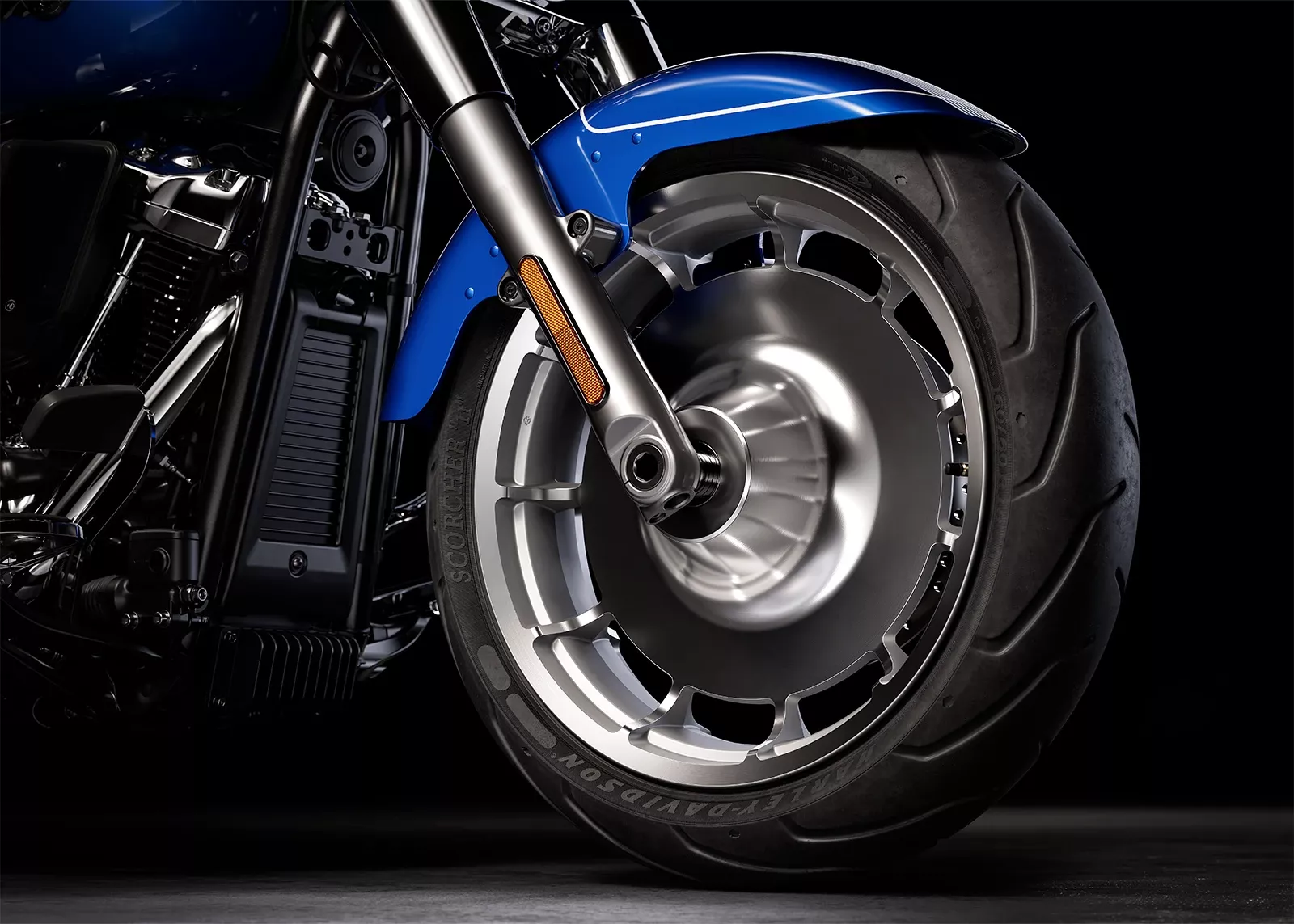 La nouvelle peinture haut de gamme et le médaillon de réservoir apportent une touche encore plus audacieuse au style légendaire offert par le Fat Boy depuis des générations.