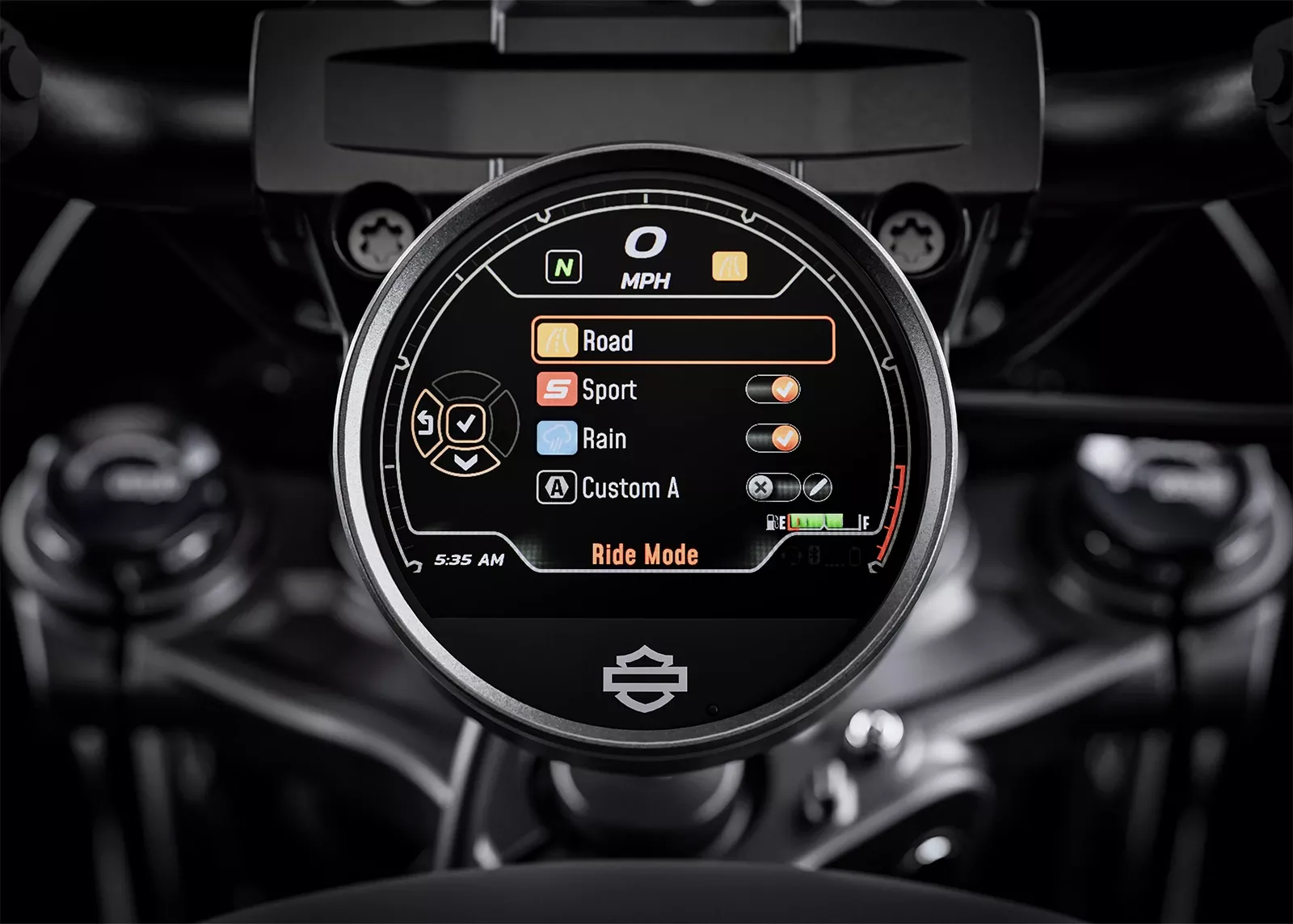 Un écran TFT de 102 mm avec Bluetooth® vous permet de connecter vos appareils pour écouter de la musique, changer rapidement de mode de pilotage ou régler les améliorations de la sécurité du pilote.
