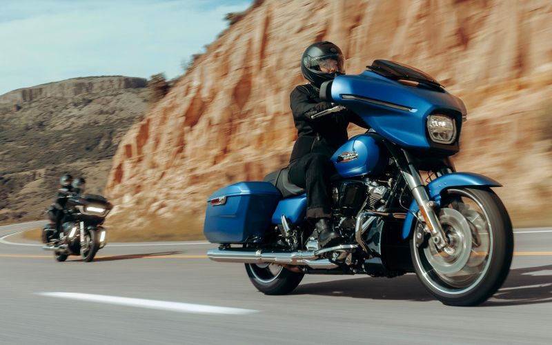 Pour ceux qui préfèrent découvrir des nouveaux chemins au lieu de rentrer directement, la Street Glide 2026 vous ouvre les portes de l’horizon. Avec de nouveaux coloris éclatants, un moteur Milwaukee-Eight™ 117 à refroidissement liquide, des suspensions arrière adaptées aux modes de pilotage pour un confort optimal sur longue distance et l’écran Skyline™ OS 312 mm pour vous maintenir sur la bonne voie, chaque occasion est bonne pour rallonger le chemin de retour chez vous.